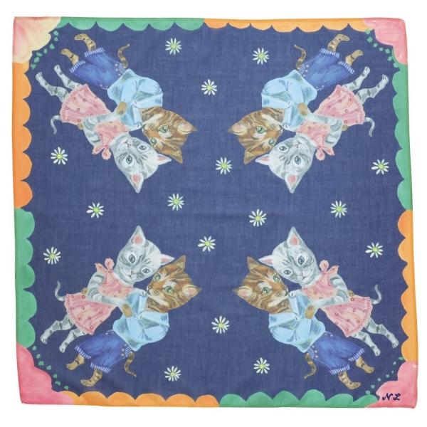 ナタリー・レテ ラージ・ハンカチ ダンシング・キャッツ 踊る猫たちのミニ・コットンスカーフ