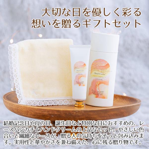 ハンカチ ハンドクリーム 名前刺繍 名入れ プレゼント ギフト 名入れ イニシャル ハンカチ レース & Miiia Bijoux ミアビジュー ハンドクリーム 母の日