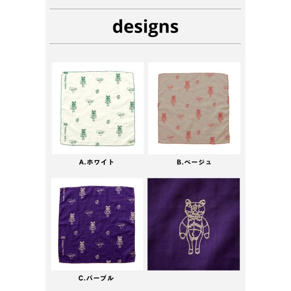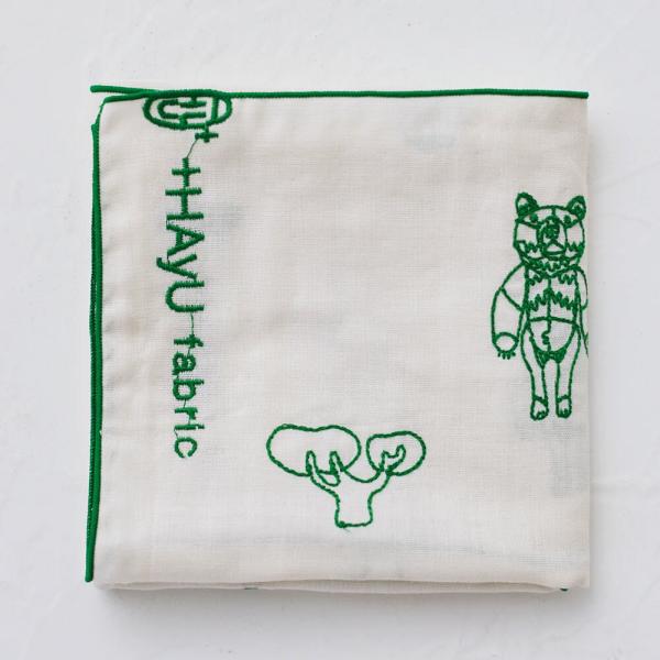 KOKKA コッカ HAyU ハンカチ 刺繍 ダブルガーゼ 綿100 小川学 ワイヤーアート BEAR動物柄 大判 45×45cm ギフト プレゼント おしゃれ