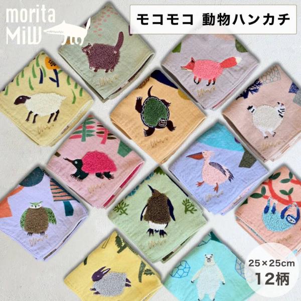 moritaMiW 森田miw ハンカチ モリアミウ タオルハンカチ モコモコドウブツハンカチ 25×25cm ガーゼ パイル 刺繍 動物 モチーフ 楠橋紋織