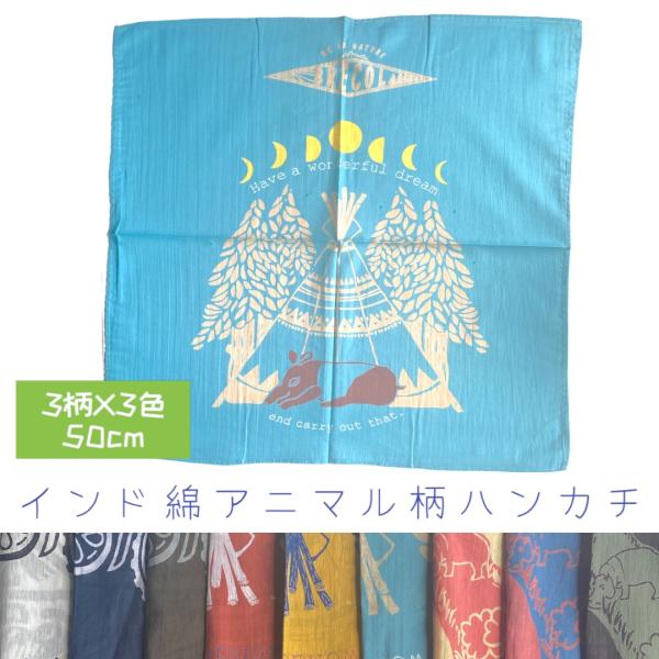 バンダナ ハンカチ コットン インド綿 アニマル柄 犬柄 50cm x 50cm お弁当包み