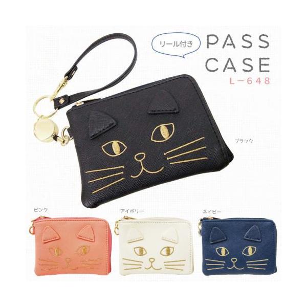 猫ちゃん刺繍のリール付きパスケース ICカードケース かわいい おしゃれ 女性用 レディース 定期入れ 通勤通学 送料無料 クリスマス ギフト プレゼント 贈り物