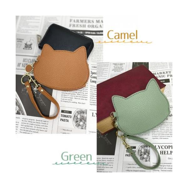 猫ちゃん リール付き パスケース 定期入れ マルチケース ミニポーチ 猫耳 伸びるリール ストラップ付 バッグチャーム ICカード入れ フェイクレザー送料無料