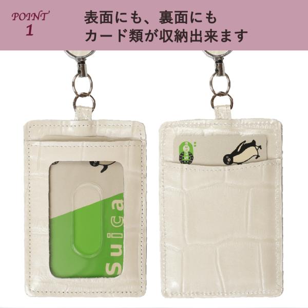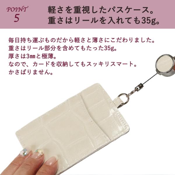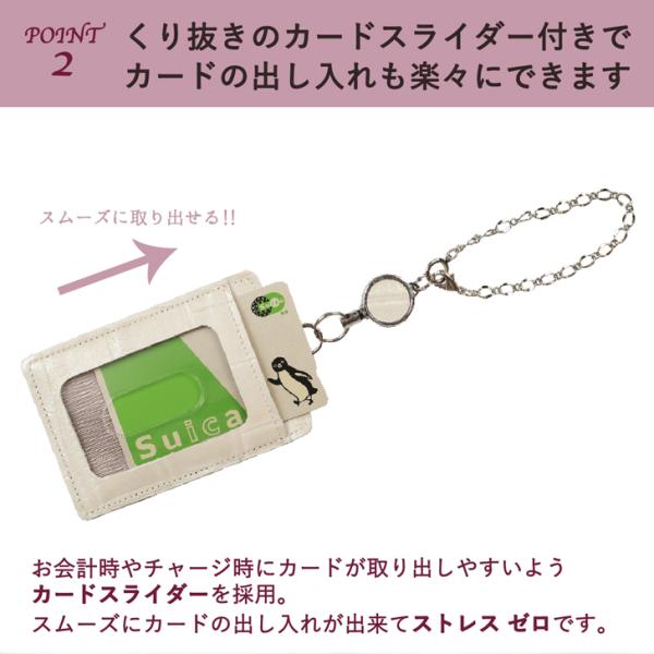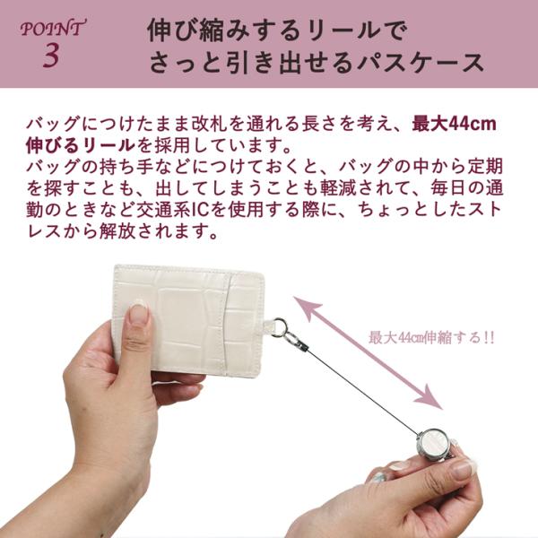 パスケース レディース おしゃれ リール付き 本革 クロコ 7色 型押し 定期ケース 定期入れ ICカードケース プレゼント お祝い