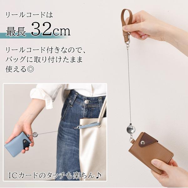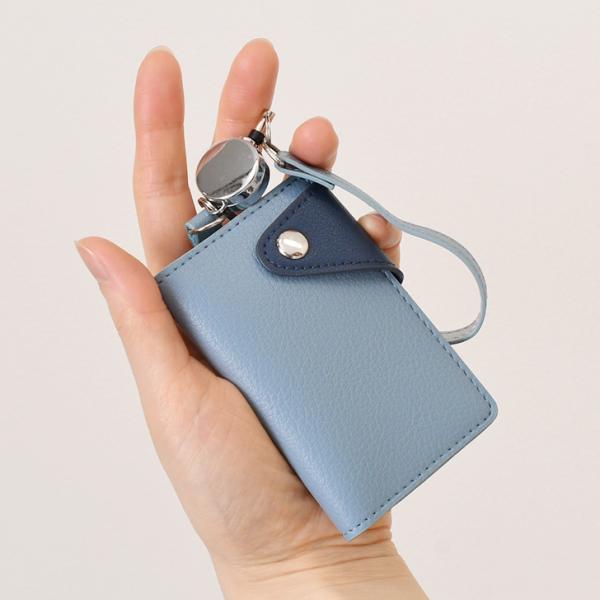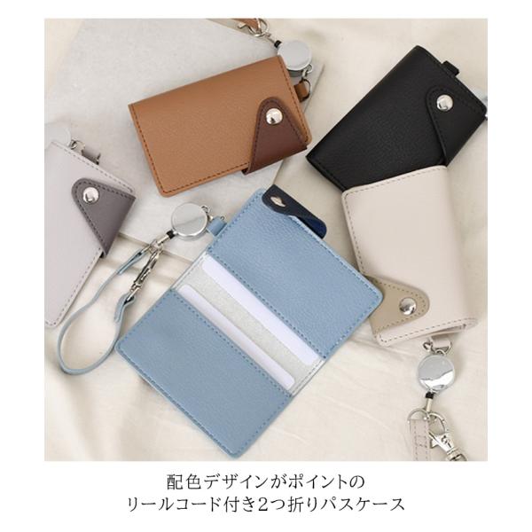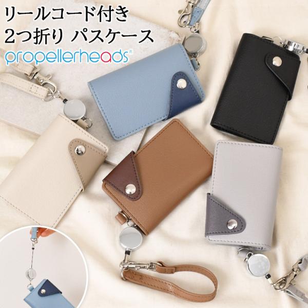 パスケース レディース メンズ フェイクレザー リールコード付き 2つ折り プロペラヘッズ 定期入れ icカード カードケース 通勤 通学 バイカラー