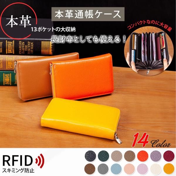 通帳 ケース お薬手帳 長財布 磁気防止 本革 スキミング防止 大容量 レザー 薄型 おしゃれ カード メンズ レディース