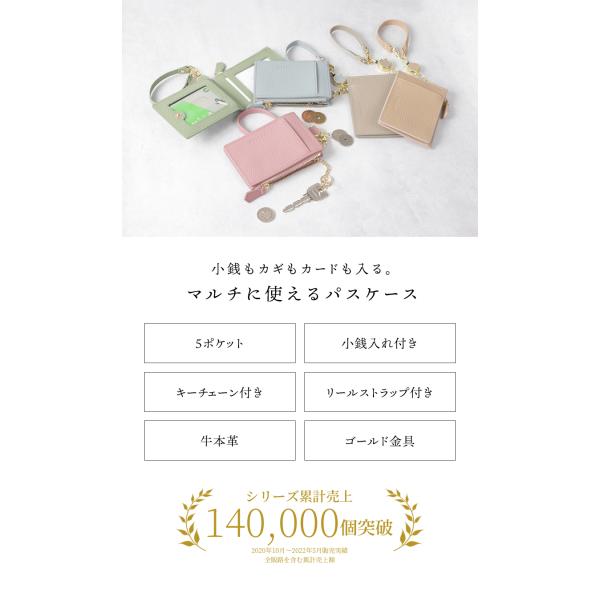 パスケース 定期入れ レディース リール 二つ折り 小銭入れ 本革 ストラップ付き おしゃれ 大人可愛い ブランド ラシエム