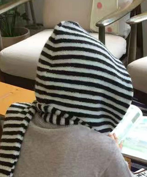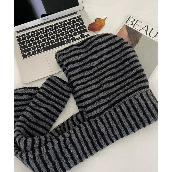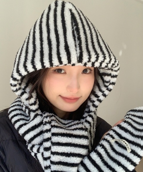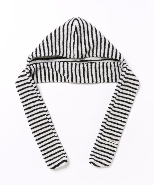 マフラー ストール HALEY PESCA/モノクロボーダー柄 フードボアマフラー レディース