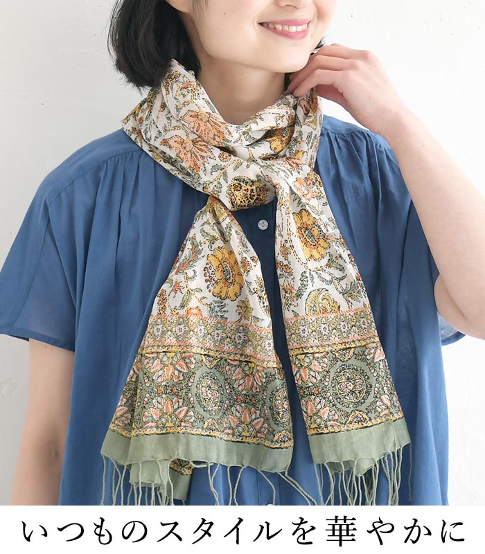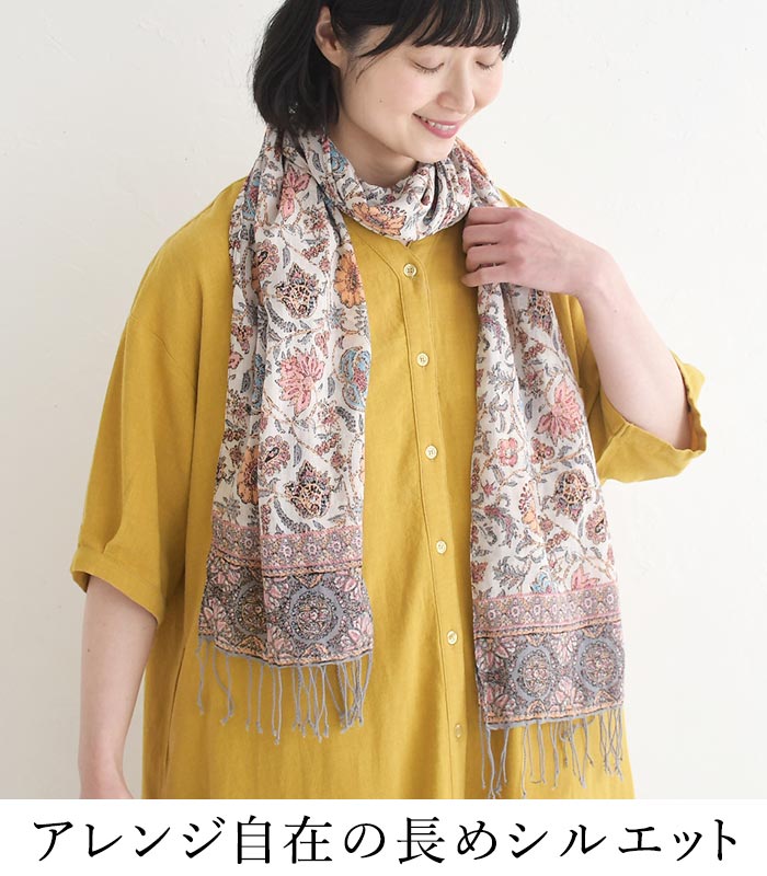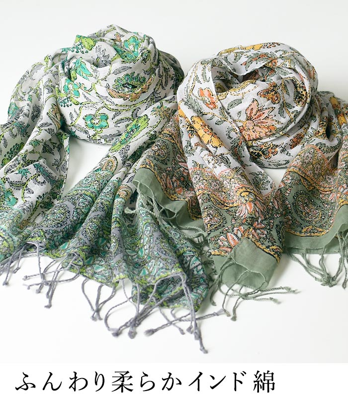 最大15%オフCPあり 2点までメール便可ストール ボタニカル柄 インド綿 綿100%春 夏 30代 40代 50代 26SS0306,