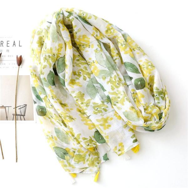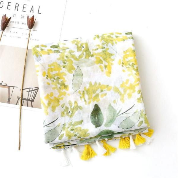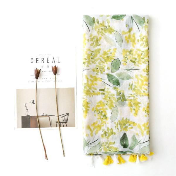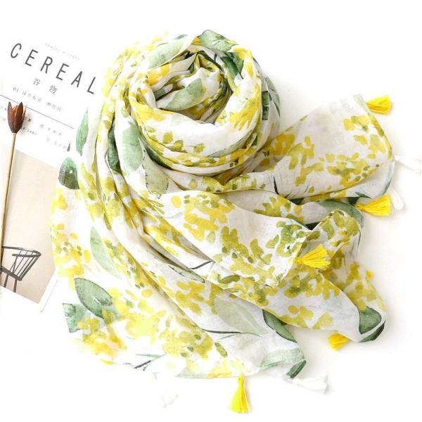 ストール/タッセル付きミモザイエロー花柄大判ストール レディース 春 夏用 春夏 秋 ショール スカーフ プレゼント uv 母の日 ギフト プレゼント 入学式