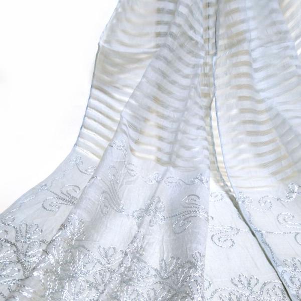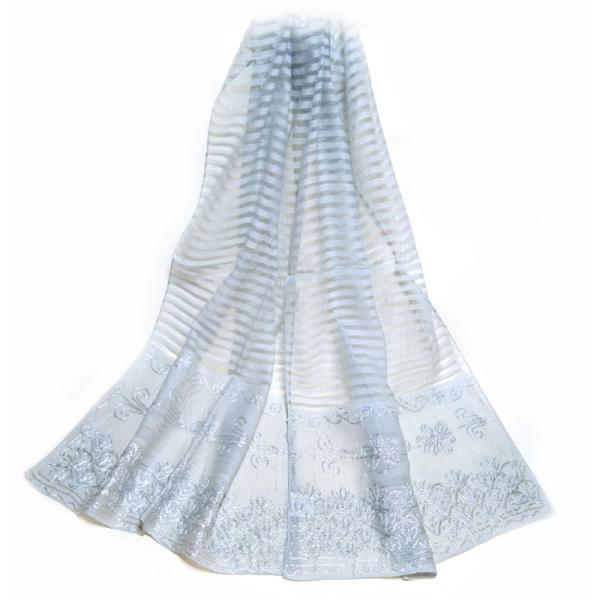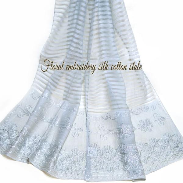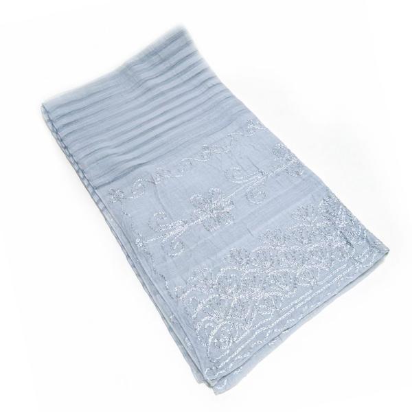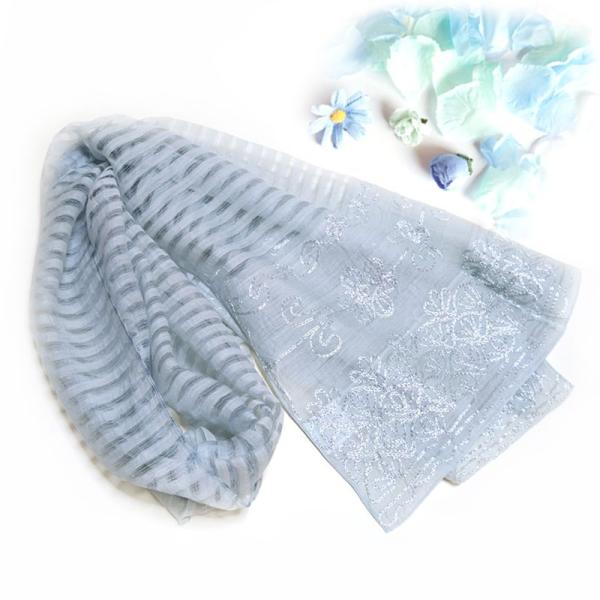 ストール 花柄刺繍のシルクコットンストール 春 夏 春夏 夏物 秋 秋冬 ブルー 青 母の日 入学式