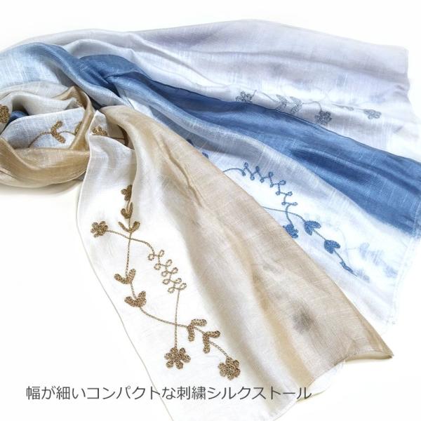 ストール 花柄刺繍グラデーションシルクストール レディース 薄手 春 夏 春夏 夏物 秋 シルク 刺繍 スカーフ 冷房対策 母の日 ギフト 入学式