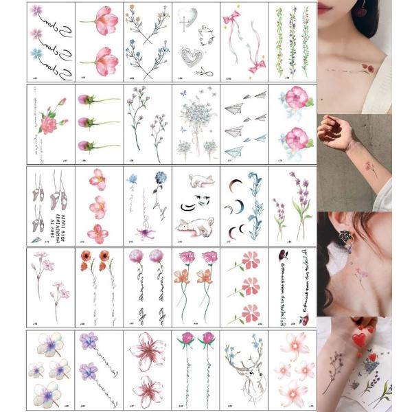 【1枚おまけ付】 タトゥーシール 30枚セット かわいい 花 月 鹿 おまけ付 送料無料 ポスト投函 E