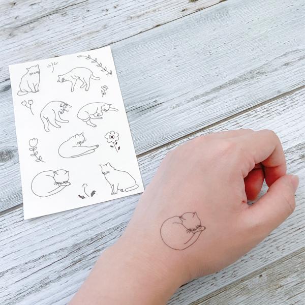 タトゥーシール 水なしで貼れる 2枚入 猫 長持ち ねこ ボディシール シンプル かわいい おしゃれ かっこいい フェス opt34