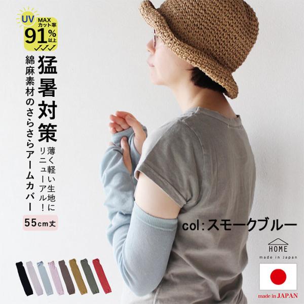 アームカバー レディース UVカット 綿 麻 コットン リネン おしゃれ さらさら 指あり 55cm丈 日本製 涼しい ゆったり 無地 腕カバー 日焼け エムアンドエム 337