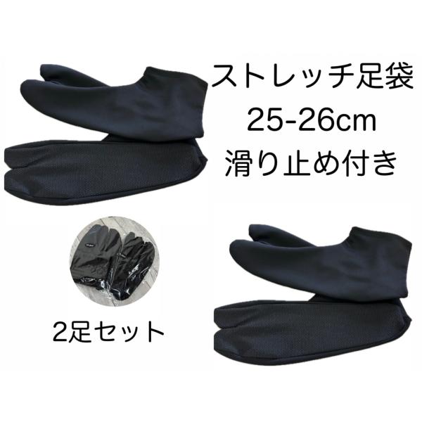 送料無料 2足セット ストレッチ足袋 25-26cm 黒 ユニセックス 滑り止め 浴衣 着物 稽古