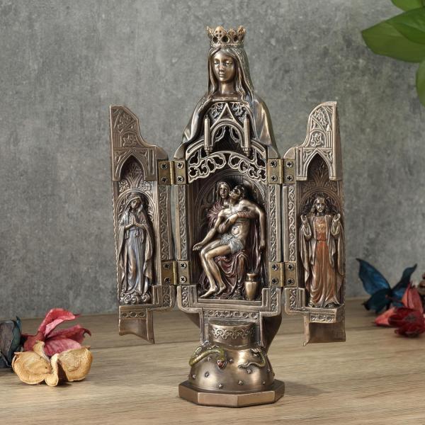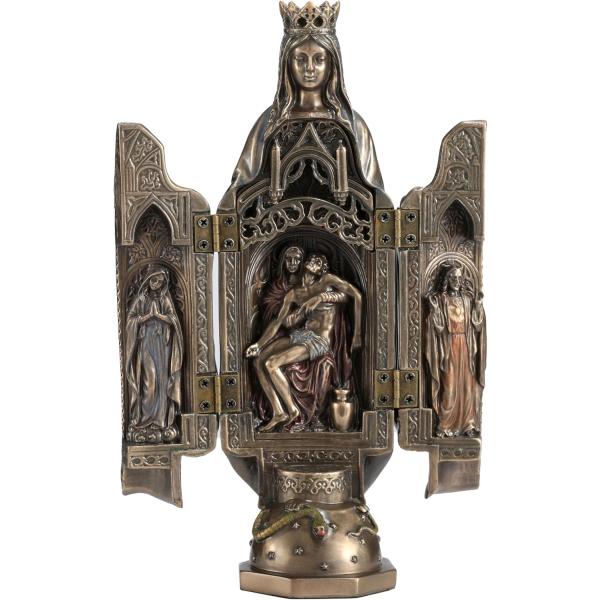 ヴェロネーゼ製 高さ20cmピエタが納められた両開き戸の聖母マリア 祭壇 ブロンズ風仕上げ輸入品