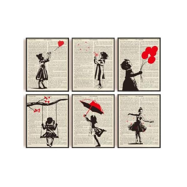 【並行輸入品】 INFUNLY Set of 6 Banksy Girl Wall Art Print UNFRAMED Graffiti Red Balloon Wall Posters Print 8x10 Abstract Modern Black and Grey Canvas