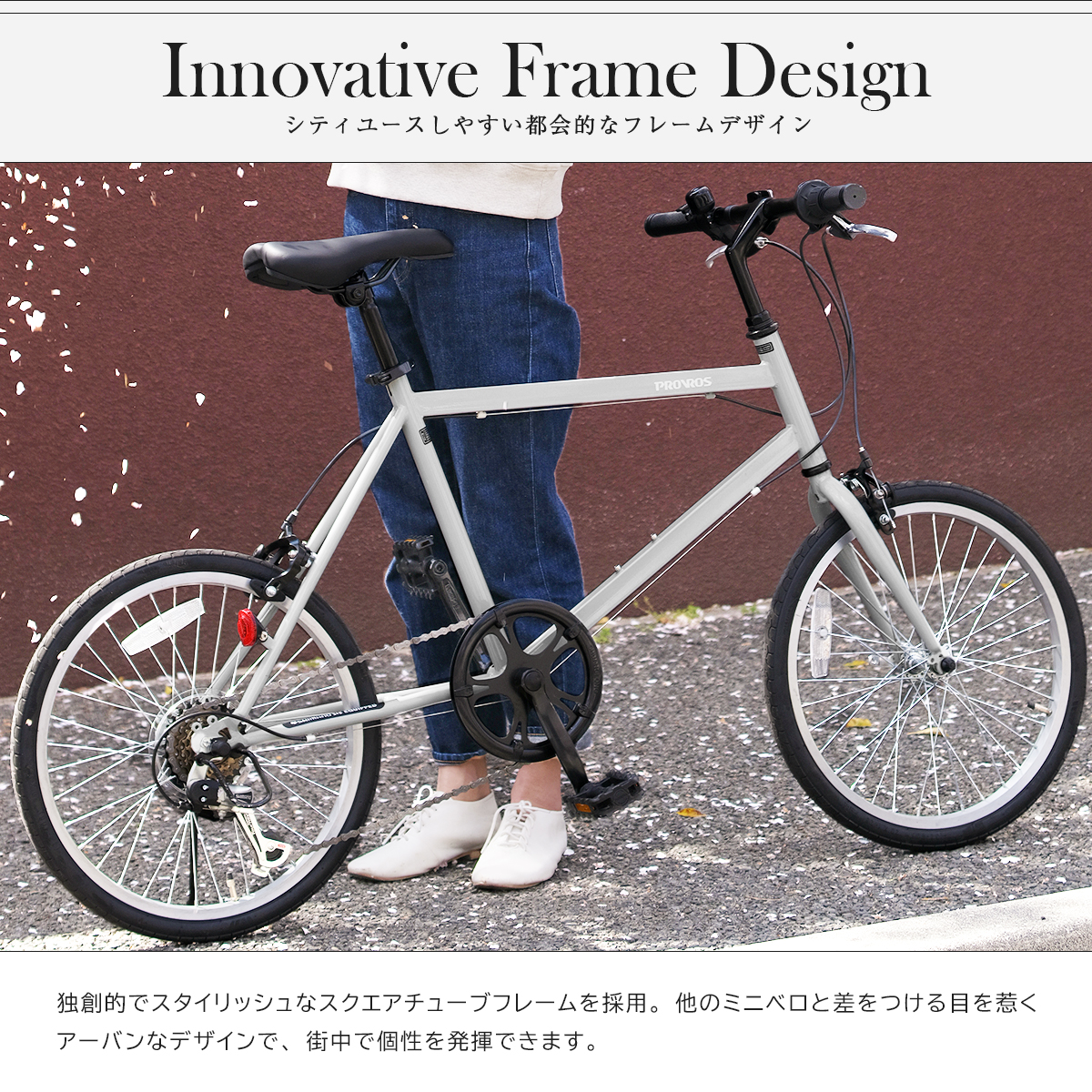 PROVROS 自転車 20インチ ミニべロ 小径車 軽量 シマノ6段変速 ワイヤー錠・LEDライト クイックレリーズ 街乗り 通勤 通学 プロブロス P-208
