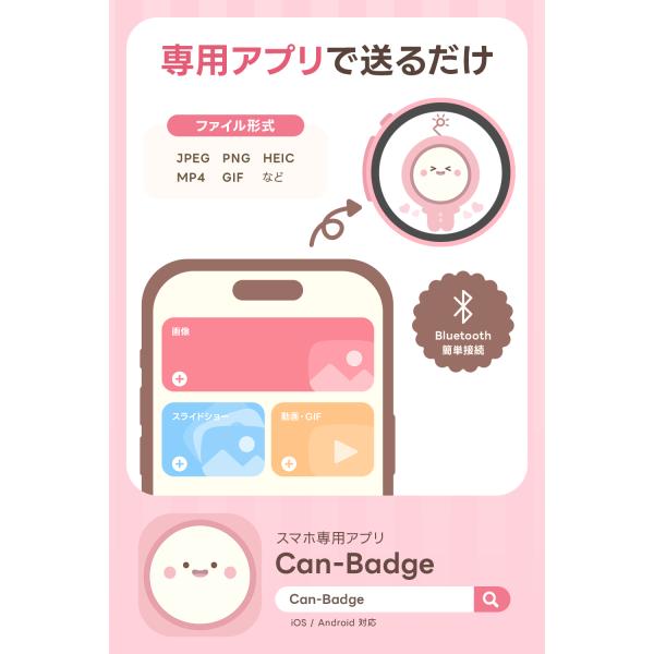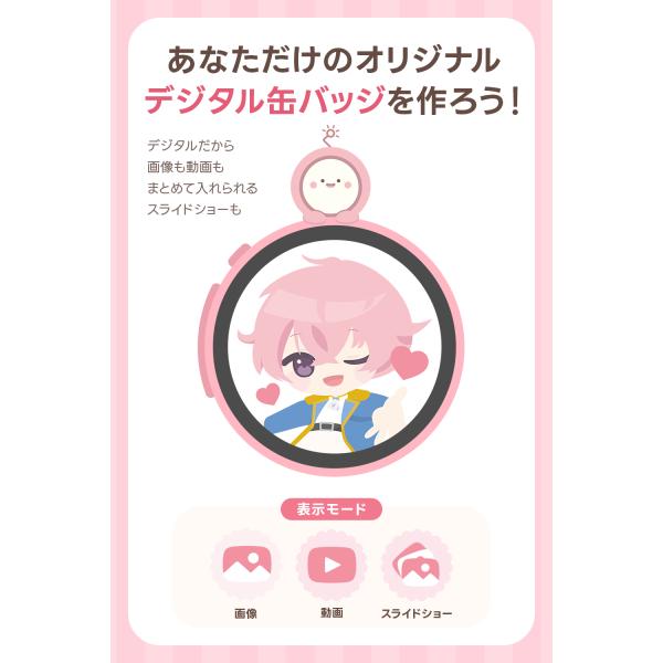 Can-Badge キャンバッジ デジタル缶バッジ 推し活グッズ 画像 動画 スライドショー スマホ転送 キーホルダー スタンド付き 推し 写真 可愛い