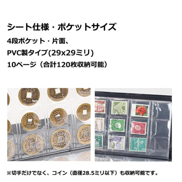コインアルバム 切手アルバムホルダー 120枚 コイン収集 切手収集 コレクション 収納 切手シート 切手ファイル 保存用 古銭 令和 メダル 貨幣 黒 茶 送料無料