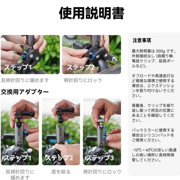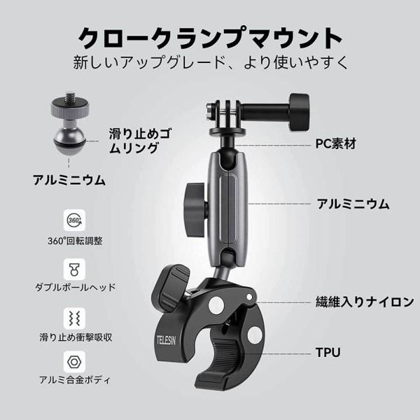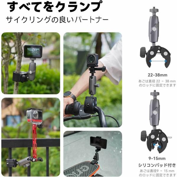 最新型 360°回転 クロークランプマウント サイクリング ライディング アルミニウム合金製 アクションカメラグリッパーモニター 自転車/バイク/オートバ