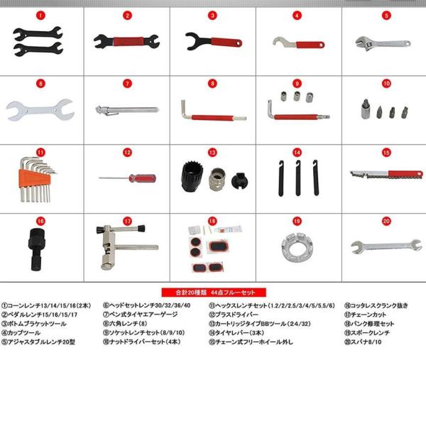 自転車工具 自転車 ロードバイク 自転車用 工具セット 44点セット メンテナンス レンチ スパナ パンク修理 自転車修理 修理 ロードバイク 便利 ZKS44