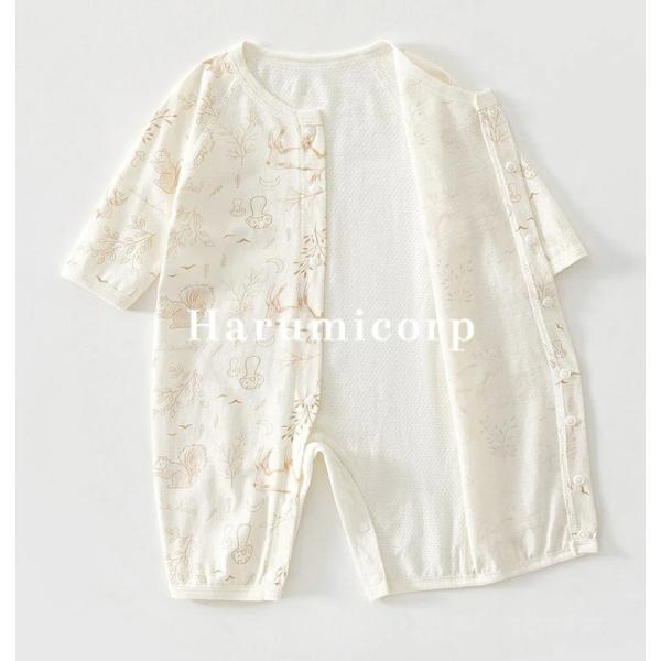 ロンパース 長袖 薄手 春 夏 男の子 女の子 前開き ベビー カバーオール 新生児 赤ちゃん ルームウェア ベビー服 パジャマ 長ズボン 全開き ボディスーツ 長袖ロ