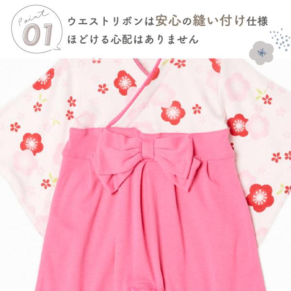 袴ロンパース 女の子 60 70 80 90 ベビー 赤ちゃん ロンパース 髪飾り レッド ピンク 60 70 80 90