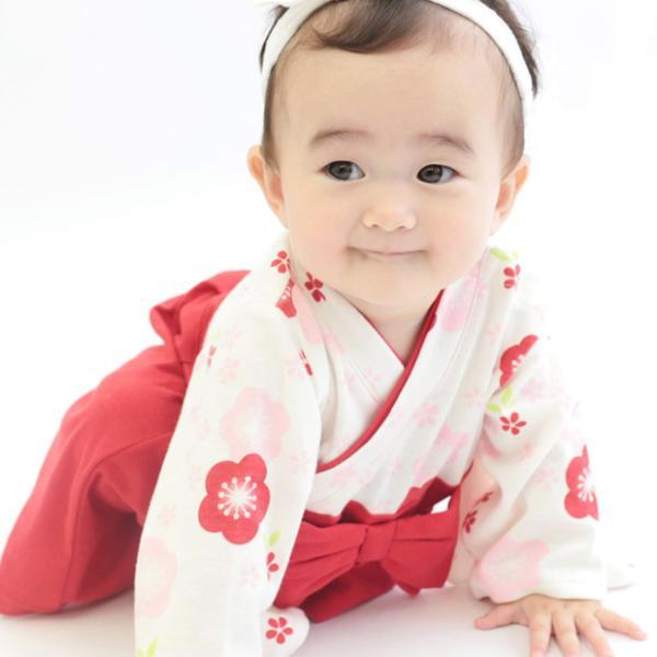 梅柄 袴 ロンパース 和服 着物 出産祝い 七五三 結婚式 60 70 80 90 ドレスオール 女の子 お正月 初節句 節句 雛祭り ひな祭り 百日祝い お食い初め