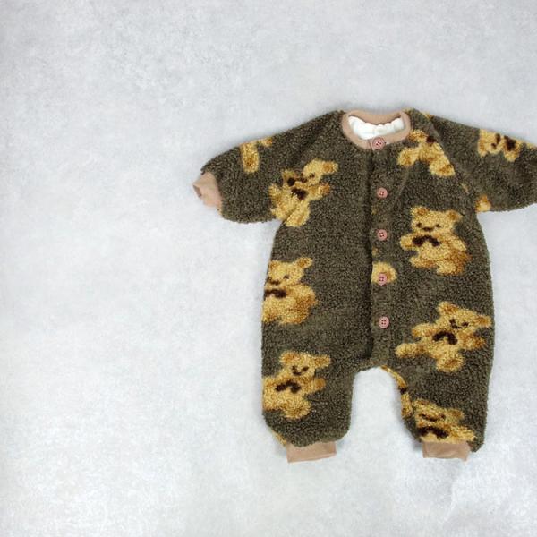 ベビー服 ロンパース 裏起毛 ボア もこもこ 暖かい 防寒 くま クマ 熊 女の子 男の子 子供服 子ども服 長袖 秋 冬 秋冬 かわいい おしゃれ キッズ ベビー