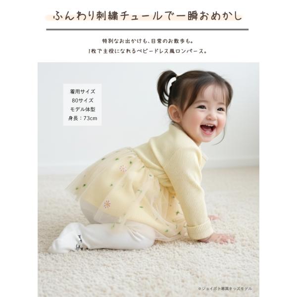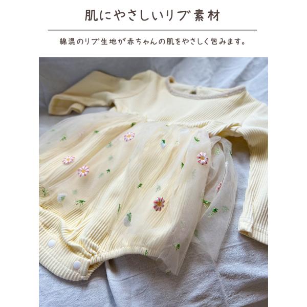花柄 チュール ロンパース ベビー服 女の子 60 70 80 90 長袖 カバーオール 子供服 赤ちゃん