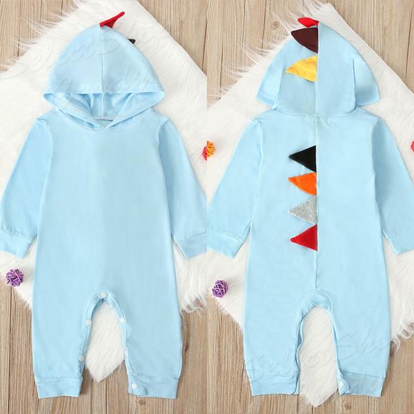 SALE中 ロンパース ベビー服 カバーオール 恐竜 着ぐるみ 長袖 子供服 70 80 90 100 フード付 帽子 ボタン 怪獣 出産祝い プレゼント 赤ちゃん LKD-03