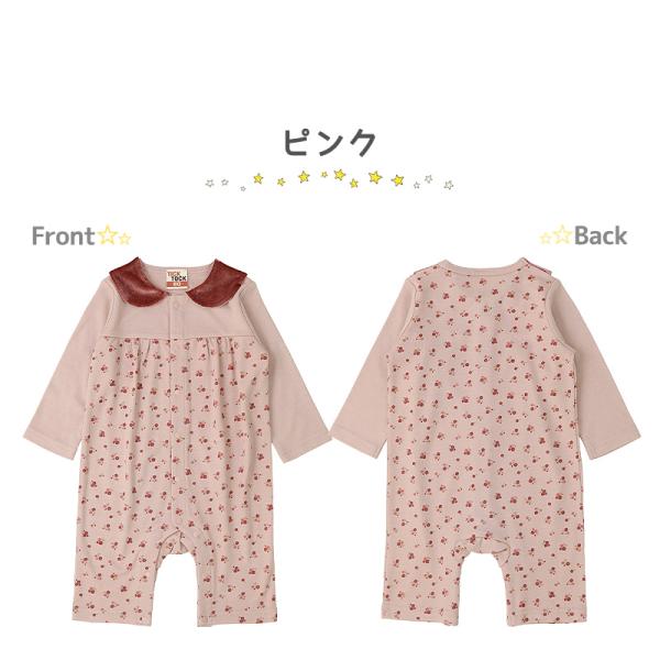 カバーオール ロンパース ベビー 新生児 子供服 長袖 前開き 衿 小花 TICKTOCK 女の子 ベビー服 ベビーウェア ピンク ナチュラル キッズ ベビー 秋物 70cm 80cm