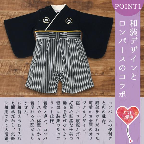 袴ロンパース ソックス スタイ 3点セット はかまロンパース 綿100% 天然素材 お祝い 和服 和装 お食い初め 七五三 節句 出産祝い 80cm 百日祝い プレゼント