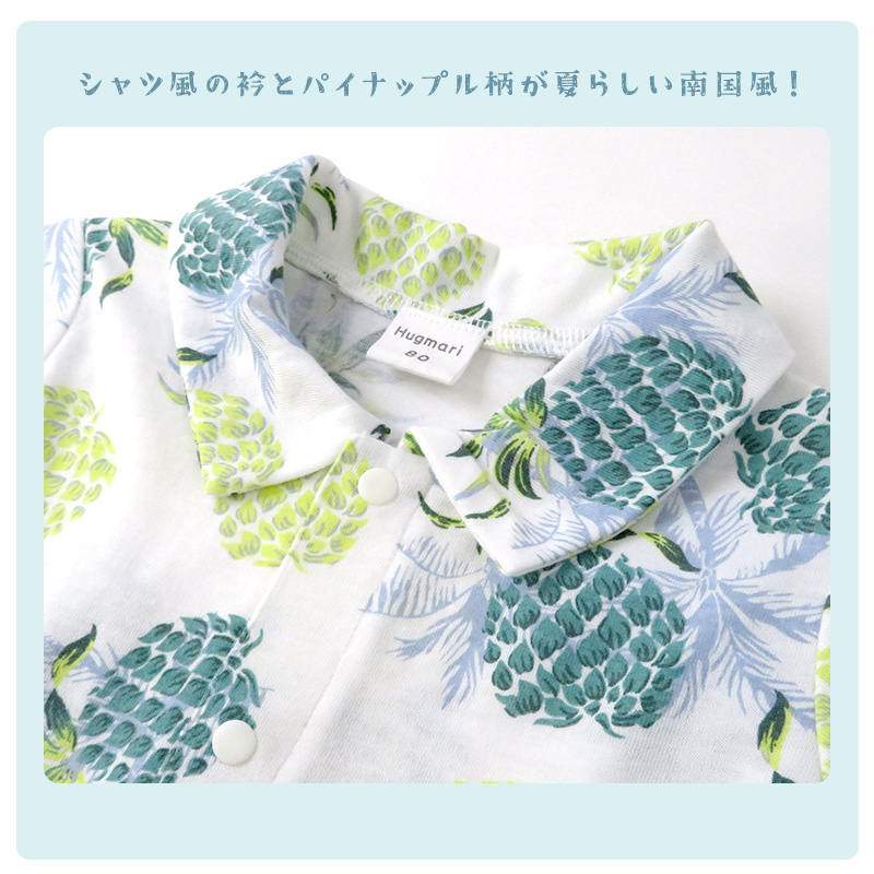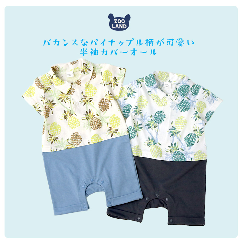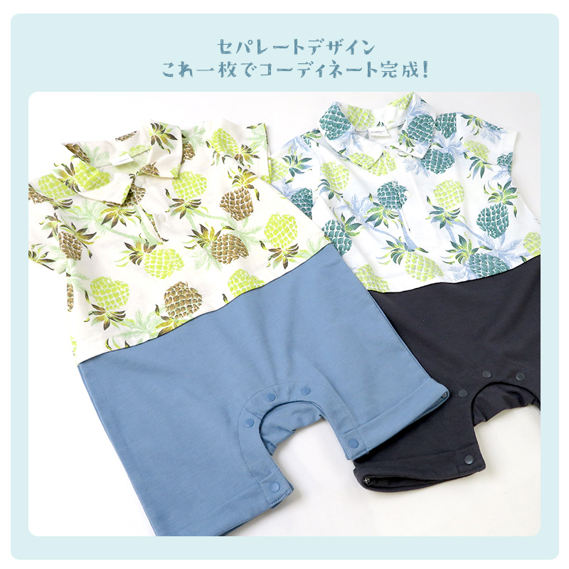 ベビー服 カバーオール 重ね着風 セパレート デザイン アロハ 衿 半袖 ロンパース 70cm 80cm 子供服 キッズ 男の子 男児 可愛い パイナップル 夏服 ギフト
