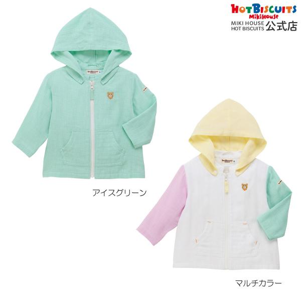 ミキハウス 二重織ガーゼ素材 パーカ アイスグリーン マルチカラー 80cm 90cm 100cm 110cm 120cm ホットビスケッツ HOT BISCUITS