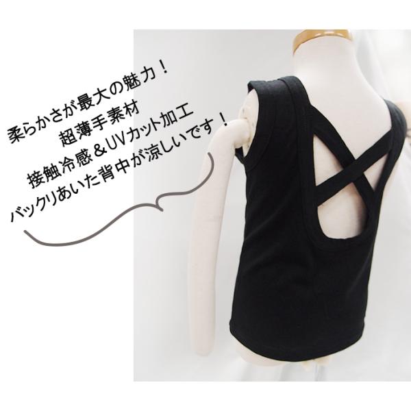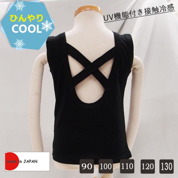背中開きバッククロスタンクトップ女の子用 猛暑に負けない超薄手接触冷感 ひんやり素材UV加工夏用薄手天竺素材(90cm 100cm 110cm 120cm 130cm)7550クール