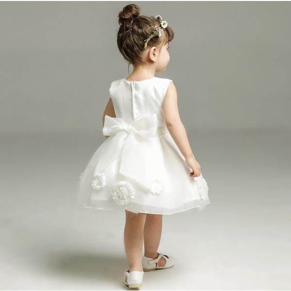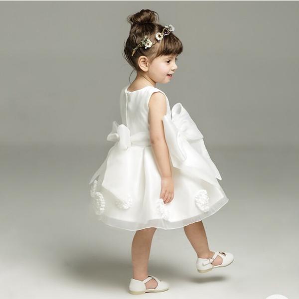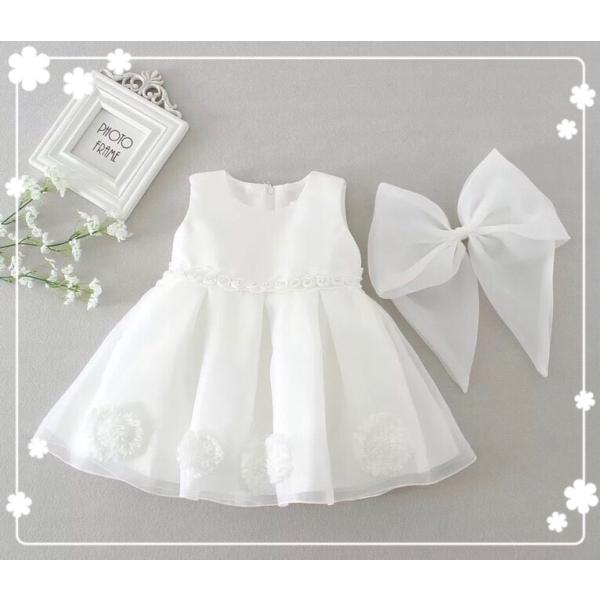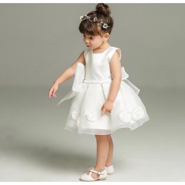 2リボン子供ドレス ベビードレス ドレス ホワイトセレモニードレス 100日祝い お食い初めコーデ ホワイト子供ドレス 70 80 90 100 110cm
