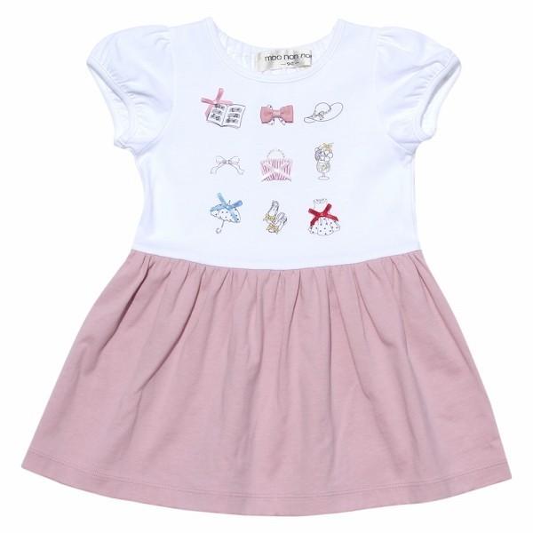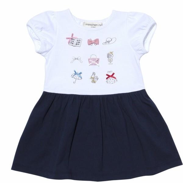 TIME SALE 57%OFF ポイント5倍 子供服 女の子 ドッキングワンピース 半袖 普段着 綿100% リボン アクセサリー 洋服 切り替え ピンク ネイビー むーのんのん