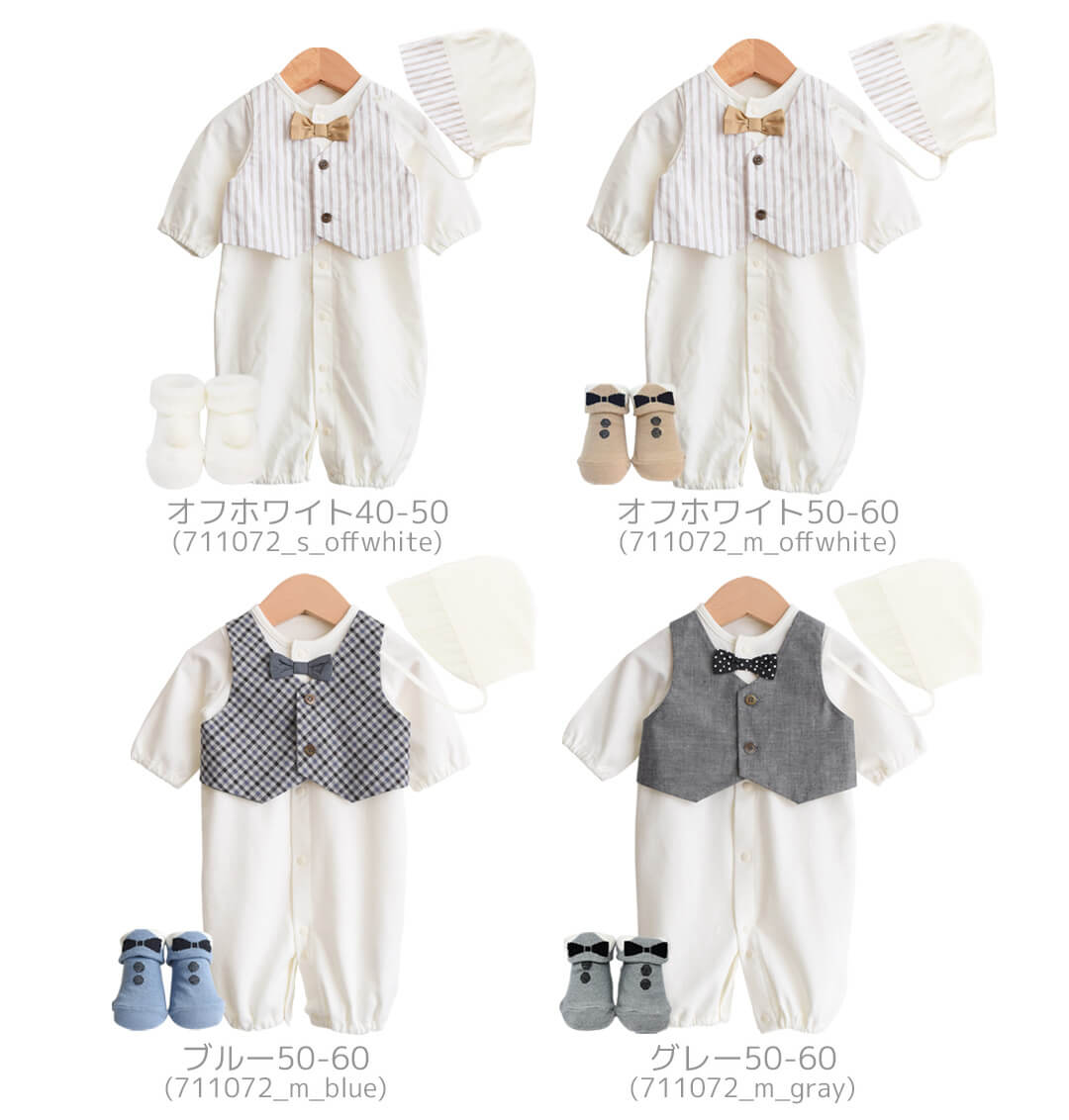 日本製 セレモニードレス 3点セット 男の子 長袖 40 50 60 ツーウェイオール ロンパース 靴下 帽子 セット 退院 新生児 ベビー フォーマル 春 夏 秋 冬