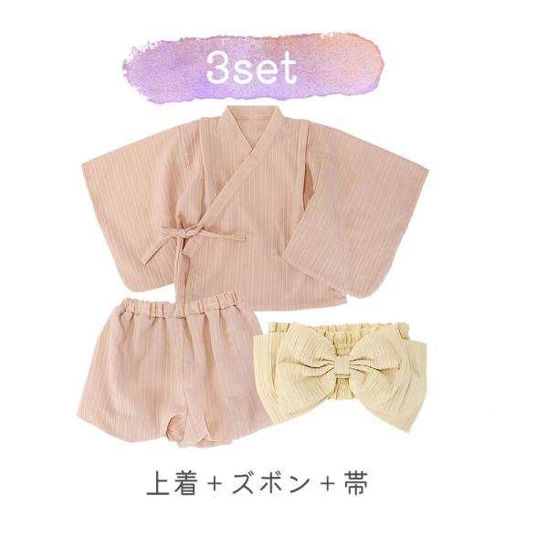 浴衣 甚平 帯 ベビー 子供 キッズ Aenak アエナック 男の子 女の子 ゆかた じんべい ピンク ベージュ 80 90 100 110 120