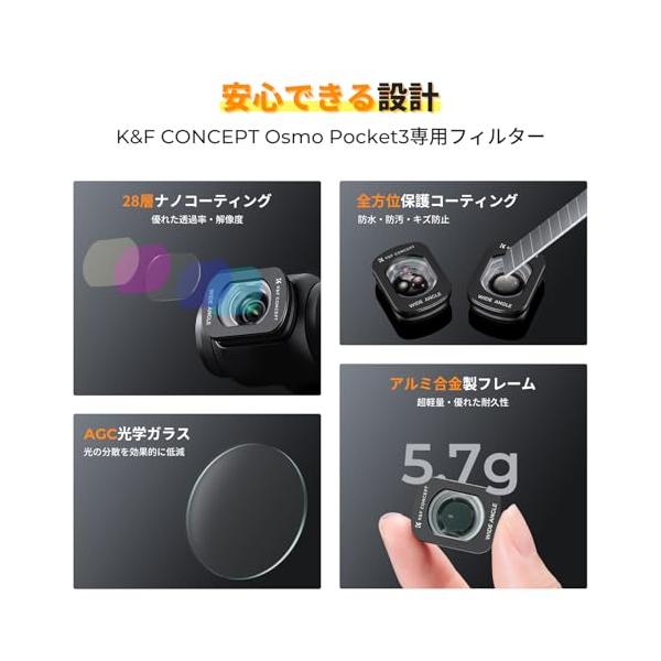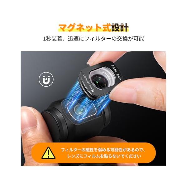 KF Concept DJI OSMO Pocket 3用磁気式フィルター 広角レンズ 広角120°撮影範囲 倍率0.72X 広角フィルター