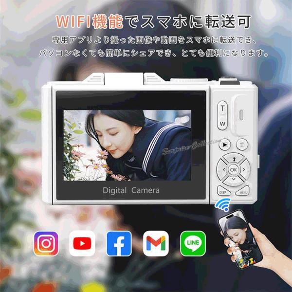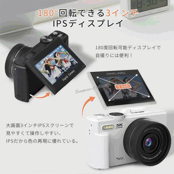 5Kデジタルカメラ デジカメ 修学旅行 スマホに転送 WIFI転送 7200万画素 18倍ズーム バッテリー 180°回転Display 子供プレゼント VLOGカメラ