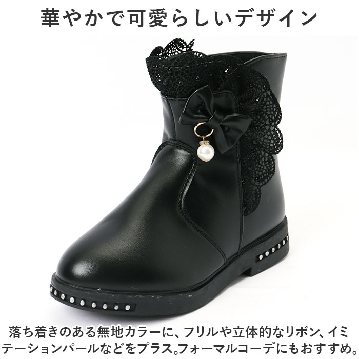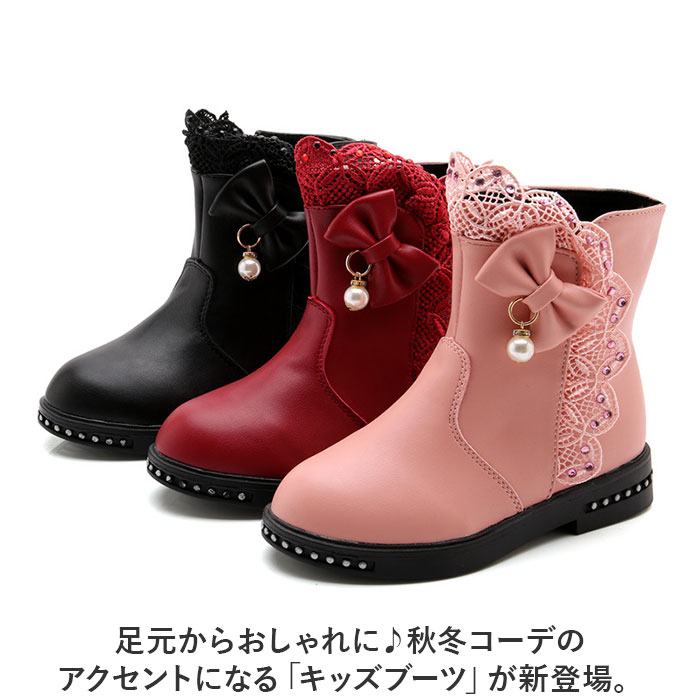 キッズ ブーツ ショート 裏起毛 女の子 通販 キッズシューズ シューズ 子供靴 レースブーツ ショートブーツ フォーマルシューズ レース リボン キッズ
