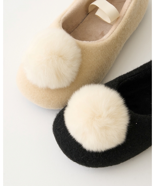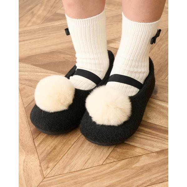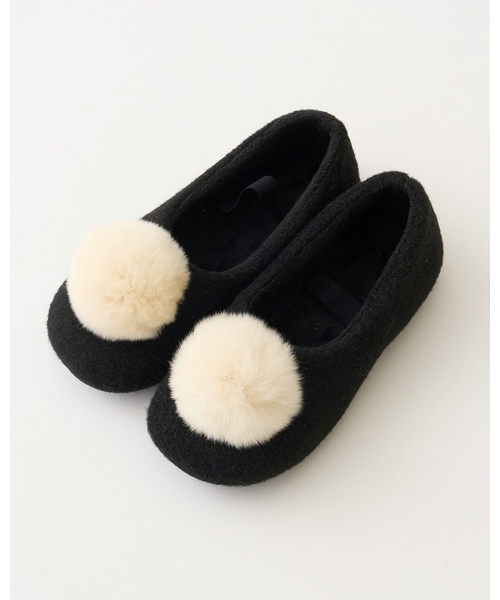バレエシューズ ファー梵天付きバレエシューズ キッズ 子供 女の子