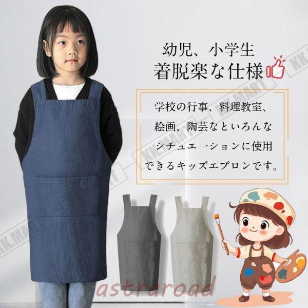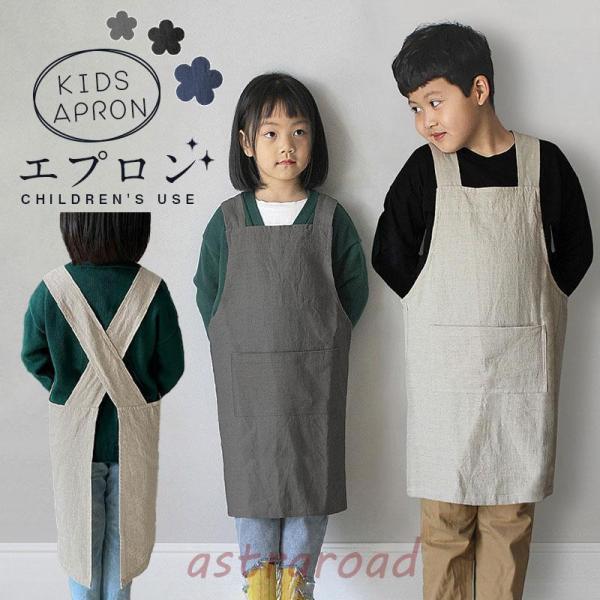 エプロン子供用 キッズ用エプロン 女の子 男の子 小学生 H型 ロング丈 かわいい おしゃれ シンプル 撥水加工 汚れ防止 無地 キッチン 料理
