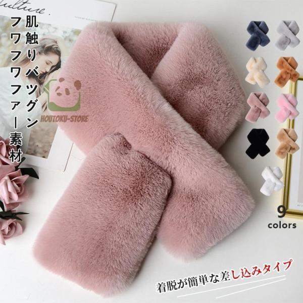 爆買マフラー レディース ファーマフラー テイペット フェイクファー 無地 差し込み 通し穴 ネックウォーマー カジュアル 可愛い もふもふ ふわふわ 暖かい 防寒