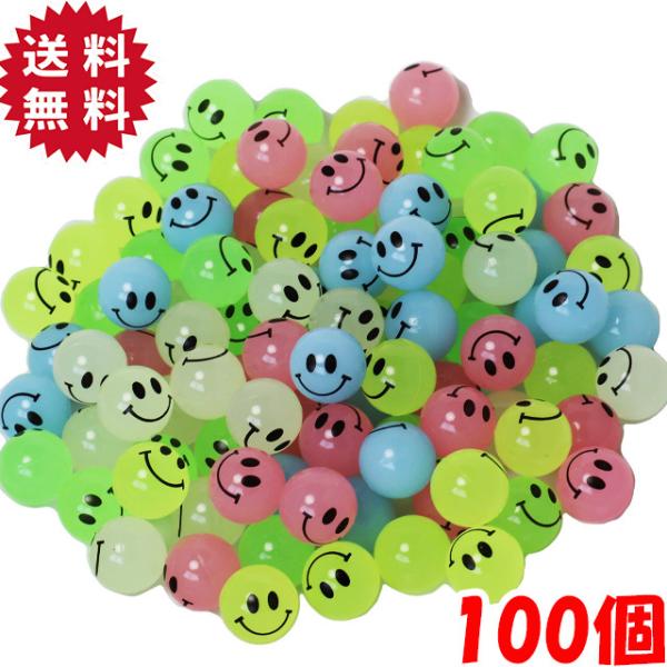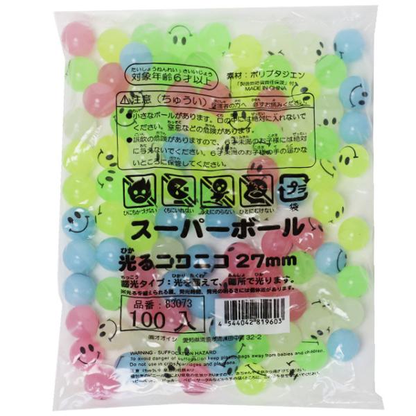 スーパーボール 光るニコニコ 27mm 100個入り 蓄光タイプ スーパーボールすくい