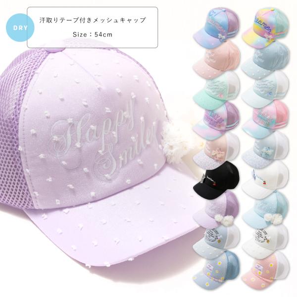 吸水速乾 汗取りテープ付き メッシュキャップ キッズ ジュニア 子供 帽子 キャップ メッシュ 吸汗速乾 ドライ 可愛い 夏 おしゃれ 女の子 54cm mw231001 [BB-11]